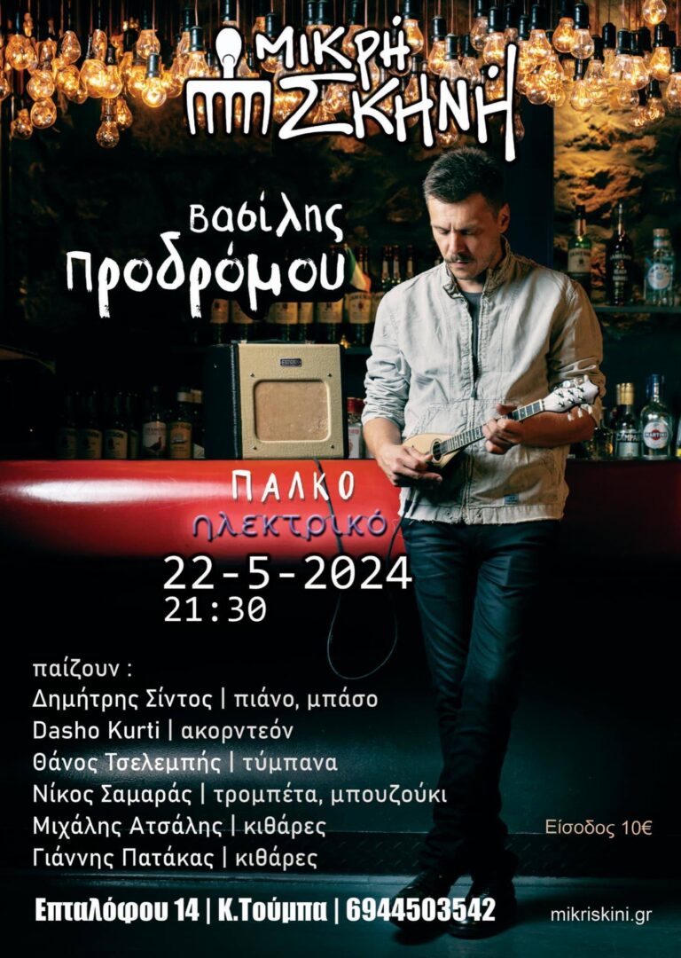 Συνέντευξη με τον μουσικό Βασίλη Προδρόμου με αφορμή τη μουσική παράσταση “Πάλκο ηλεκτρικό” στη Μικρή Σκηνή (Θεσσαλονίκη) την Τετάρτη 22/5/24