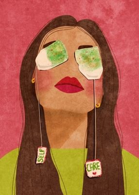 Και η εικόνα. Ώρα για διάλειμμα με μια κούπα τσάι! “Time for a tea break” με την υπογραφή της Raissa Oltmanns. Παρατηρώ τα «self care» εμβαπτιζόμενα φακελάκια. Να είναι άραγε μέντα ή λουίζα;