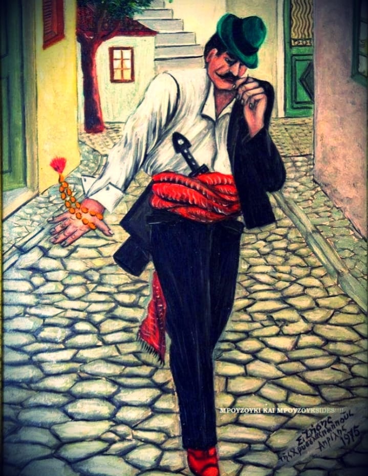 Και η εικόνα. «Μάγκας στη Σαλονίκη» με την υπογραφή του λαϊκού ζωγράφου Σωτήρη Ζήση. Έργο του 1975.