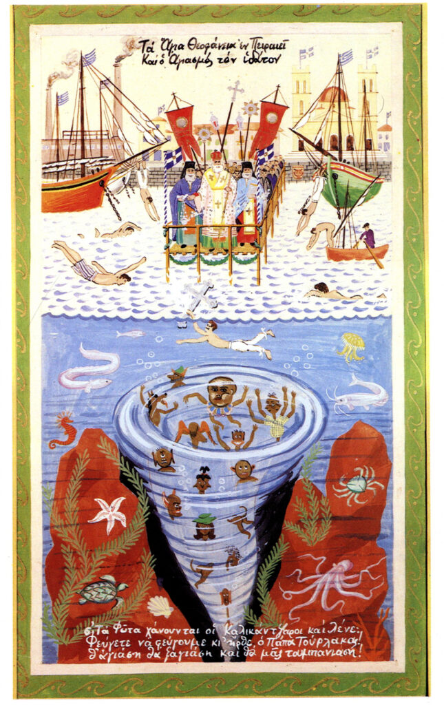 Και ο πίνακας. «Τα Αγια Θεοφάνεια εν Πειραιεί» με την υπογραφή του Παναγιώτη Τέτση.