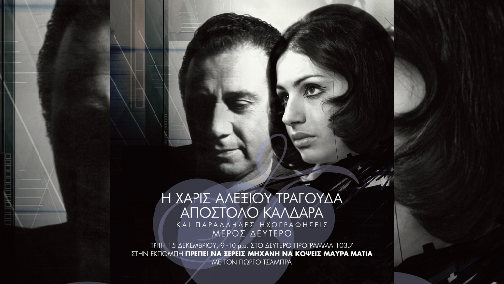 Πέμπτη 10 και Τρίτη 15 Δεκεμβρίου, 9 με 10 το βράδυ, στο Δεύτερο Πρόγραμμα 103.7. Για την Αλεξίου, ήταν η αφετηρία. Η ακρόασή της – λέει – έγινε σ’ ένα διάλειμμα δικής του ηχογράφησης με τον Γιώργο Νταλάρα. Και τραγούδησε «Νύχτωσε χωρίς φεγγάρι». Για τον Απόστολο Καλδάρα ήταν η τρίτη κορύφωση: «Μικρά Ασία», «Βυζαντινός εσπερινός», «Ροβινσώνες», «Για ρεμπέτες και για φίλους». Μέσα σε δύο χρόνια (1972 – 1974). Μετά, οι δρόμοι τους χώρισαν. Ως το τέλος του (1990) ο Καλδάρας θα ηχογραφήσει 15 ακόμη μεγάλους δίσκους. Η Αλεξίου, θα γίνει …η Αλεξίου. Έτσι κι αλλιώς όμως, μετά την Βίκυ Μοσχολιού, τη Γιώτα Λύδια και την Πόλυ Πάνου, είναι η γυναικεία φωνή που έχει ηχογραφήσει τα περισσότερα τραγούδια του. Το 1987,στο «Σείριο» του Μάνου Χατζιδάκι, θα επαναφέρει αλλιώς το «Όποια και να ‘σαι». Σε άλλες ηχογραφήσεις της, θα τραγουδήσει «Συ μου χάραξες πορεία», «Ένα αστέρι πέφτει πέφτει». Και το 2005, στο θέατρο Βράχων, στη συναυλία που έγινε με δική της πρωτοβουλία για τη Βίκυ Μοσχολιού, θα μοιραστεί με τις 9 ακόμη γυναικείες φωνές που συμμετέχουν, το «Δεν ξέρω πόσο σ’ αγαπώ». Στις δύο εκπομπές, ξανακούμε τα τραγούδια – μαζί με κάποια ακόμη που ηχογραφήθηκαν παράλληλα – και προσπαθούμε να αναπαραστήσουμε τα χρόνια. Πάντα με την πεποίθηση και με στόχο ότι «Πρέπει να ξέρεις μηχανή να κόψεις μαύρα μάτια».