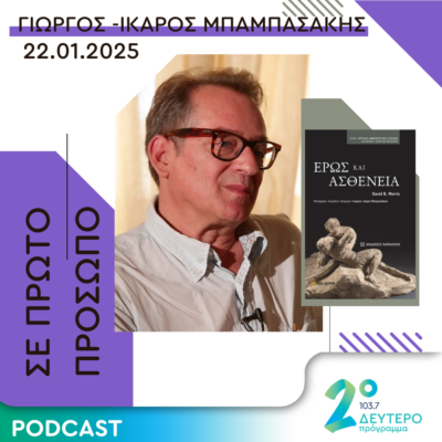 Σήμερα Τετάρτη ο Γιώργος -Ίκαρος Μπαμπασάκης μας μιλάει για την πρόσφατη μεταφραστική εργασία πάνω στο βιβλίο του David B. Morris “Έρως και Ασθένεια”.