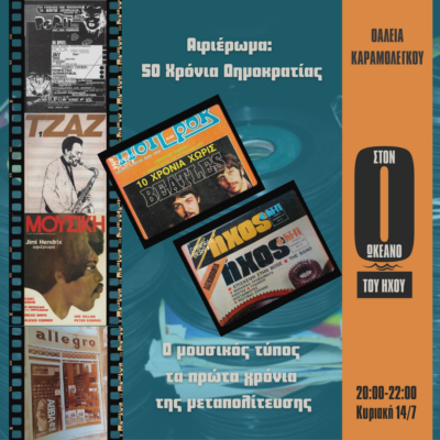 Σε μία δίωρη ζωντανή εκπομπή, η Θάλεια Καραμολέγκου έπιασε το νήμα της Μεταπολίτευσης μέσα από τα μουσικά έντυπα των πρώτων χρόνων της εποχής μετά την πτώση της χούντας. Και, παράλληλα, τις νεανικές κουλτούρες, τις συναυλίες, τα στέκια αλλά και όσα συνέβαιναν πέρα από την επικράτεια του πολιτικού τραγουδιού και των μεγάλων συναυλιών.