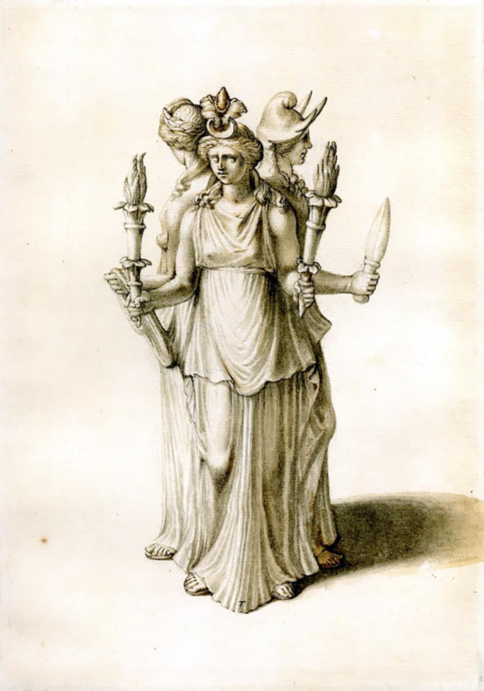 (φωτό: απεικόνιση της «τρίμορφης» Εκάτης, θεάς της Μαγείας)