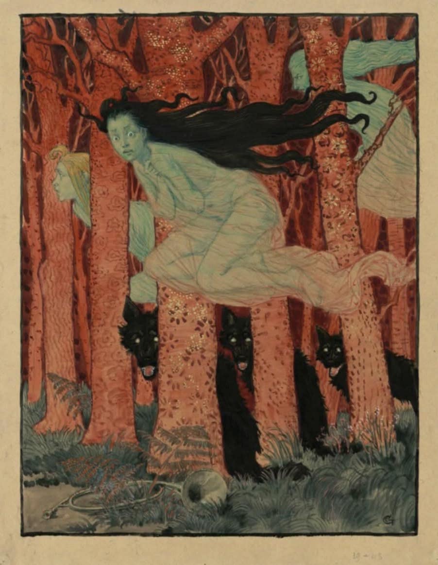 (Εικόνα: Eugène Grasset, “Trois femmes et trois loups”, vers 1900)