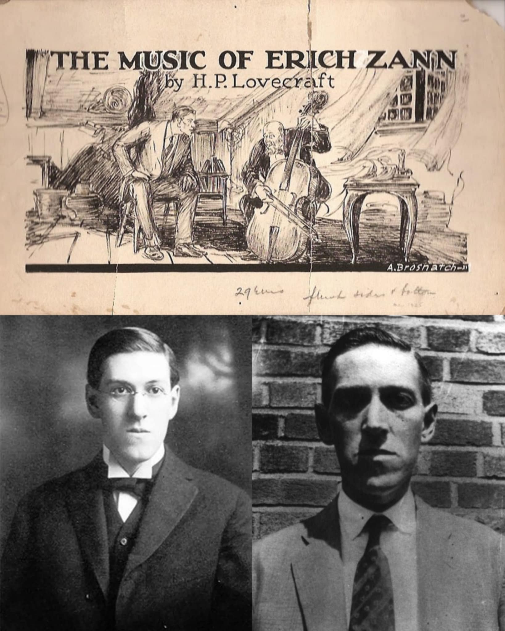 «Καθώς στεκόμουν εκεί κοιτάζοντας με τρόμο, ο άνεμος έσβησε και τα δύο κεριά σ’ εκείνη την αρχαϊκή σοφίτα και μ’ άφησε μέσα σ’ ένα άγριο και αδιαπέραστο σκοτάδι με το χάος και το πανδαιμόνιο ν’ απλώνονται μπροστά μου και τη δαιμονική τρέλα αυτού του νυχτερινού παίχτη της βιόλας πίσω μου». – H. P. Lovecraft: «Η Μουσική του Έριχ Ζαν»