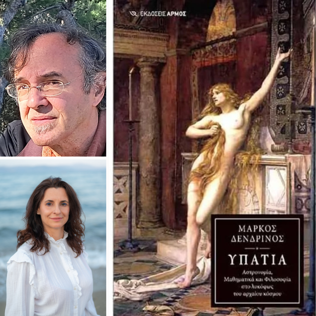 Ο Μάρκος Δενδρινός. Καθηγητής Πληροφορικής και Ιστορίας & Φιλοσοφίας της Επιστήμης και η Μαριάννα Λαμπίρη, ηθοποιός, μας ξεναγούν σε ένα θέμα εξαιρετικά γοητευτικό που αφορά τη μεγάλη φιλόσοφο και επιστήμονα Υπατία. Αφορμή το βιβλίο του καθηγητή Δενδρινού με τον ομώνυμο τίτλο, ο οποίος αναζήτησε την επιστημονική της συνεισφορά μέσα από τις επιστολές του χριστιανού μαθητή της Συνέσιου, μετέπειτα επισκόπου Κυρήνης. Το θέμα «η γυναίκα στην Τέχνη και την Επιστήμη» δεν παύει ποτέ να είναι επίκαιρο με το τελικό αίτημα της απόλυτης ισότητας. Μουσικές συνθετριών πλαισιώνουν τη συζήτησή μας.