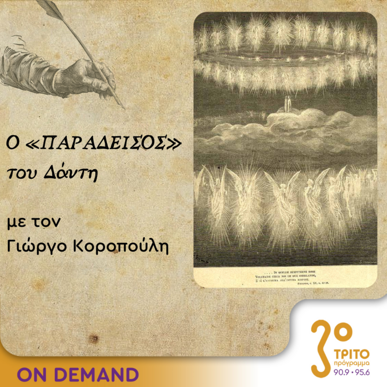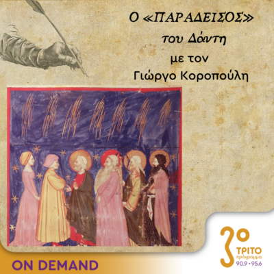 Ο Γιώργος Κοροπούλης διαβάζει, σε καινούργια, δική του μετάφραση, τον «Παράδεισο», τρίτο μέρος της «Θείας Κωμωδίας» του Dante Alighieri. Η ανάγνωση των 33 ασμάτων του «Παραδείσου», σε 20 ημίωρα επεισόδια, (συνέχεια της ανάγνωσης του «Καθαρτηρίου», που είχε προηγηθεί) συνυφαίνεται και πάλι με μουσική την οποία συνέθεσαν ο Γιώτης Παρασκευαΐδης και ο Κίμων Βλαχάκης, που ανέλαβε και την επιμέλεια ήχου. Η μετάφραση τηρεί τον ενδεκασύλλαβο στίχο και υποτυπωδώς την terza rima του πρωτοτύπου – στο «περιεχόμενο» του οποίου παραμένει απολύτως πιστή.